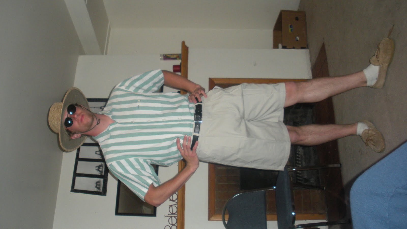 Dave and Mary and I went to DI to get Dave some books one evening. Dave then had a brilliant idea to find the epitome of old men outfits and buy it for Andy. Andy looks like he's enjoying it way too much.
